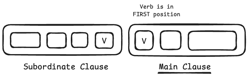 In these cases, the verb of the main clause is in SECOND position.